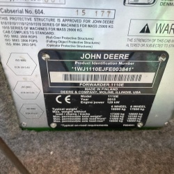 Na sprzedaż forwarder John Deere 1110E w wersji 8-kołowej. Maszyna z 2015 roku, pochodząca z polskiej sieci dystrybucji. Egzemplarz z przebiegiem ok. 22 300 mth, wyposażony w żuraw CF5 o zasięgu 8,5 metra oraz mocne oświetlenie LED. Sprawdzona konstrukcja z silnikiem IT4.
